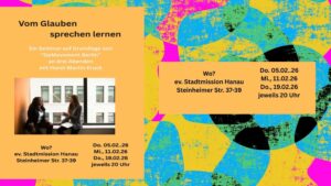 - 5Vom Glauben sprechen lernen! Seminar in der Stadtmission.20:00 - 21:00