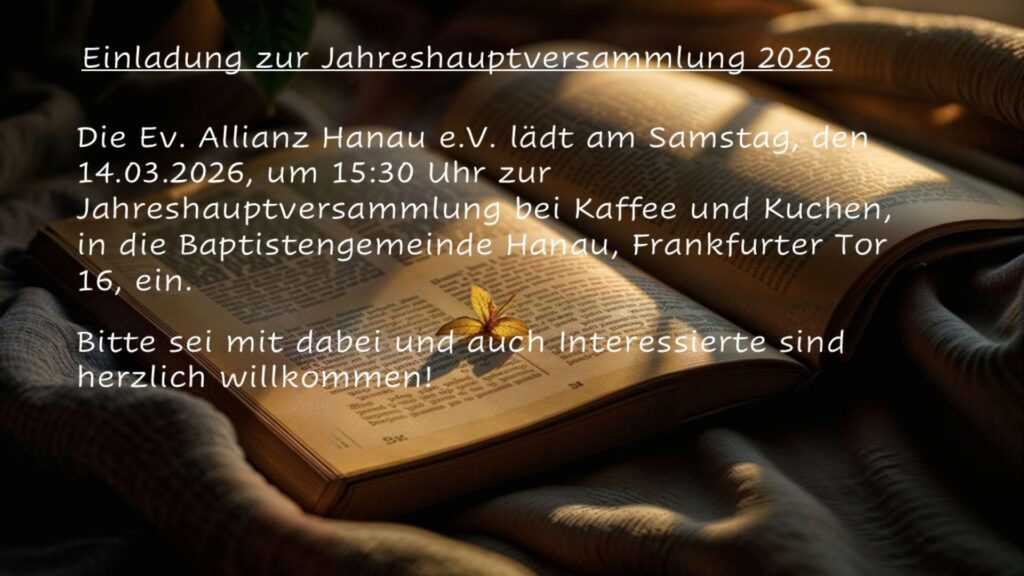 Jahreshauptversammlung 2026von Gerd Moeller21.02.202621.02.2026 In der Baptistengemeinde Hanau! Schreibe einen Kommentar Antwort abbrechenDeine E-Mail-Adresse wird nicht veröffentlicht. Erforderliche Felder sind mit * markiertName * E-Mail-Adresse * Website Kommentar * Δ Diese Website verwendet Akismet, um Spam zu reduzieren. Erfahre, wie deine Kommentardaten verarbeitet werden.