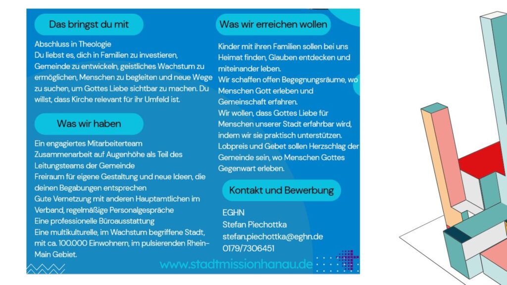 Stellenausschreibung Pastorin / Pastorvon Gerd Moeller06.02.202606.02.2026 Stadtmission Hanau sucht! Schreibe einen Kommentar Antwort abbrechenDeine E-Mail-Adresse wird nicht veröffentlicht. Erforderliche Felder sind mit * markiertName * E-Mail-Adresse * Website Kommentar * Δ Diese Website verwendet Akismet, um Spam zu reduzieren. Erfahre, wie deine Kommentardaten verarbeitet werden.